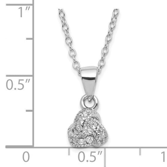 Sterling Silver Rhodium-pl CZ Love Knot Circles with 2.5 in ext Necklace