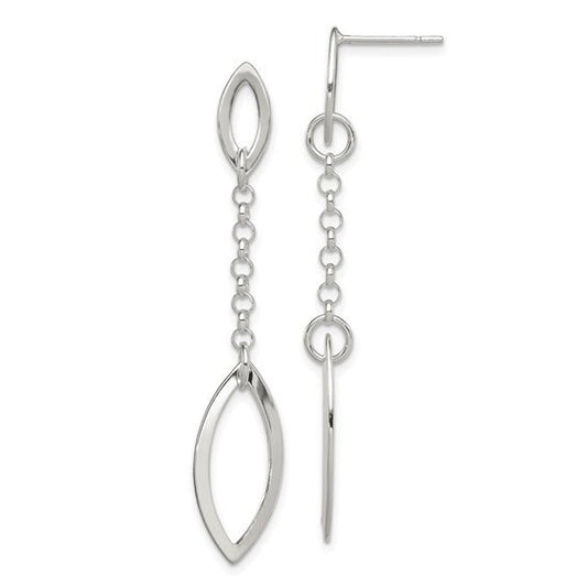 Sterling Silver Polished Marquise Shapes and Chain Post Dangle Earrings