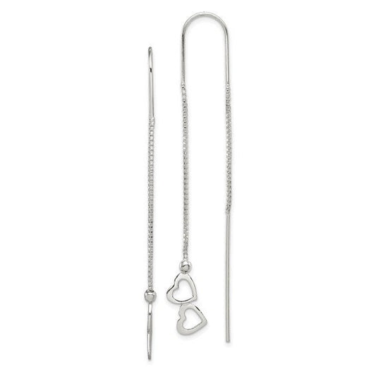 Sterling Silver Polished Double Heart Threader Earrings