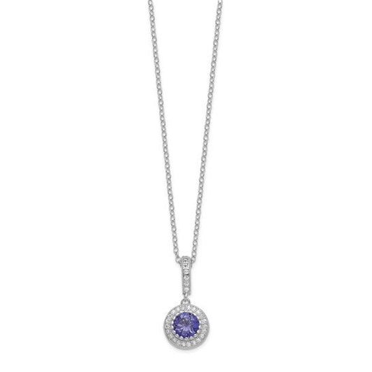 Sterling Silver Polished Rhodium-plated CZ 18in Necklace/Post Earrings Set