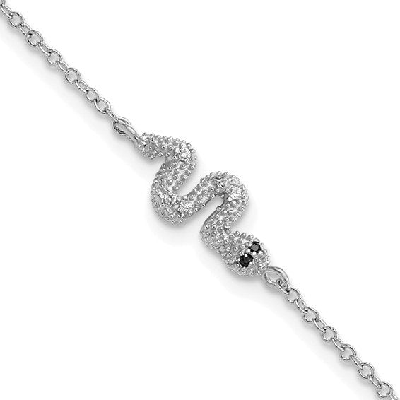 Sterling Silver Rhodium-plated Black and White CZ Snake 7 Inch Bracelet with 1 Inch Extension
